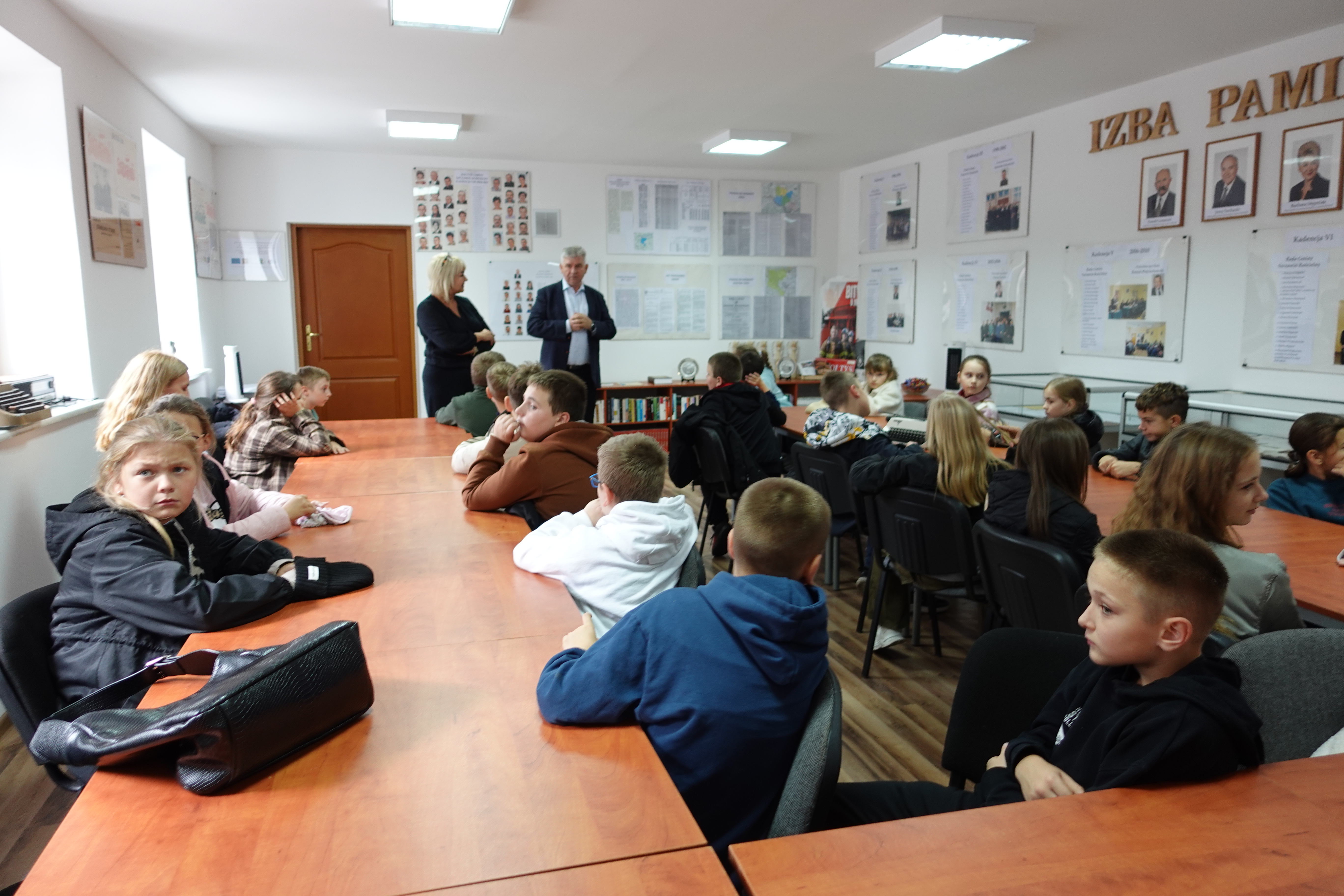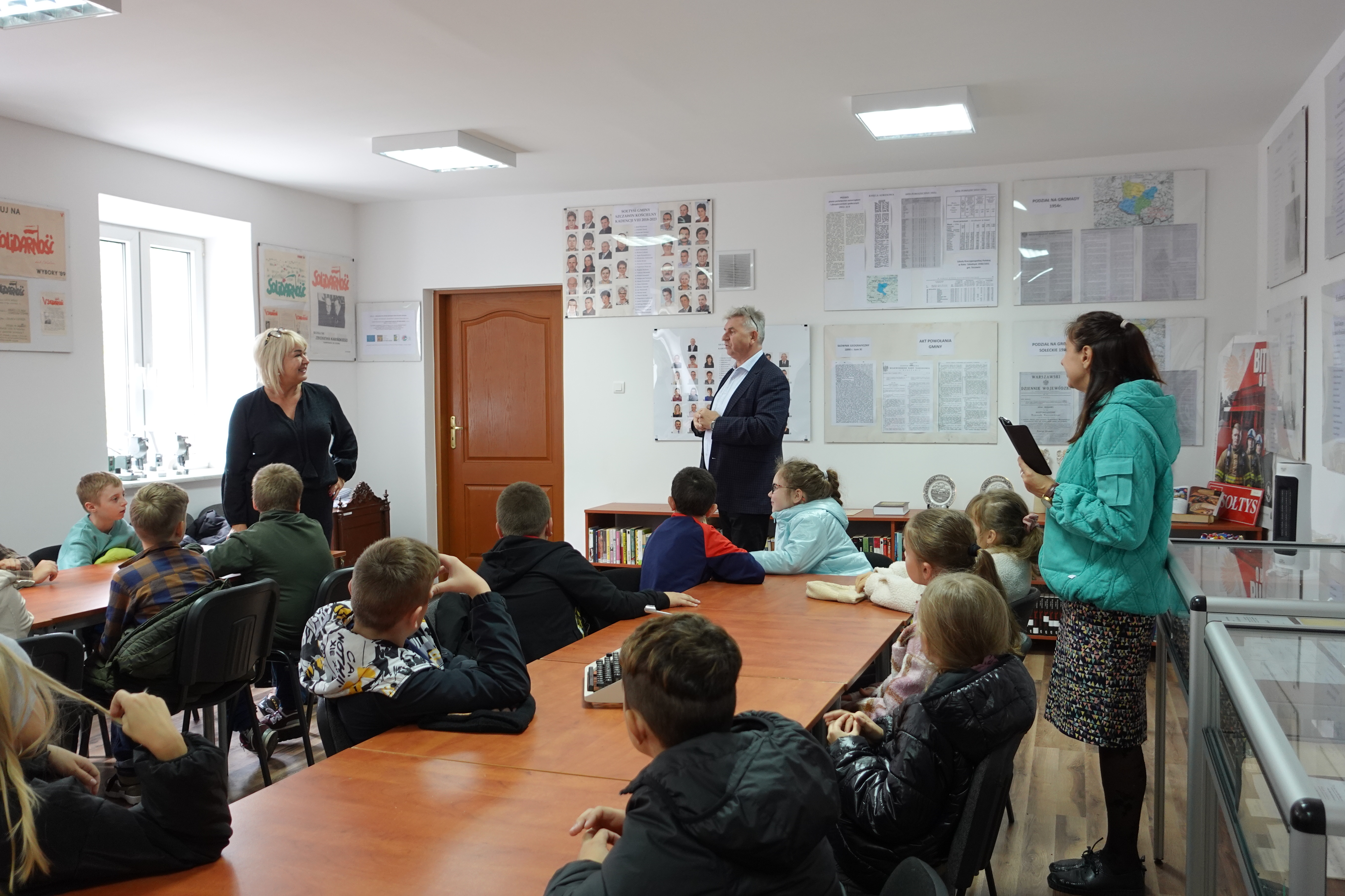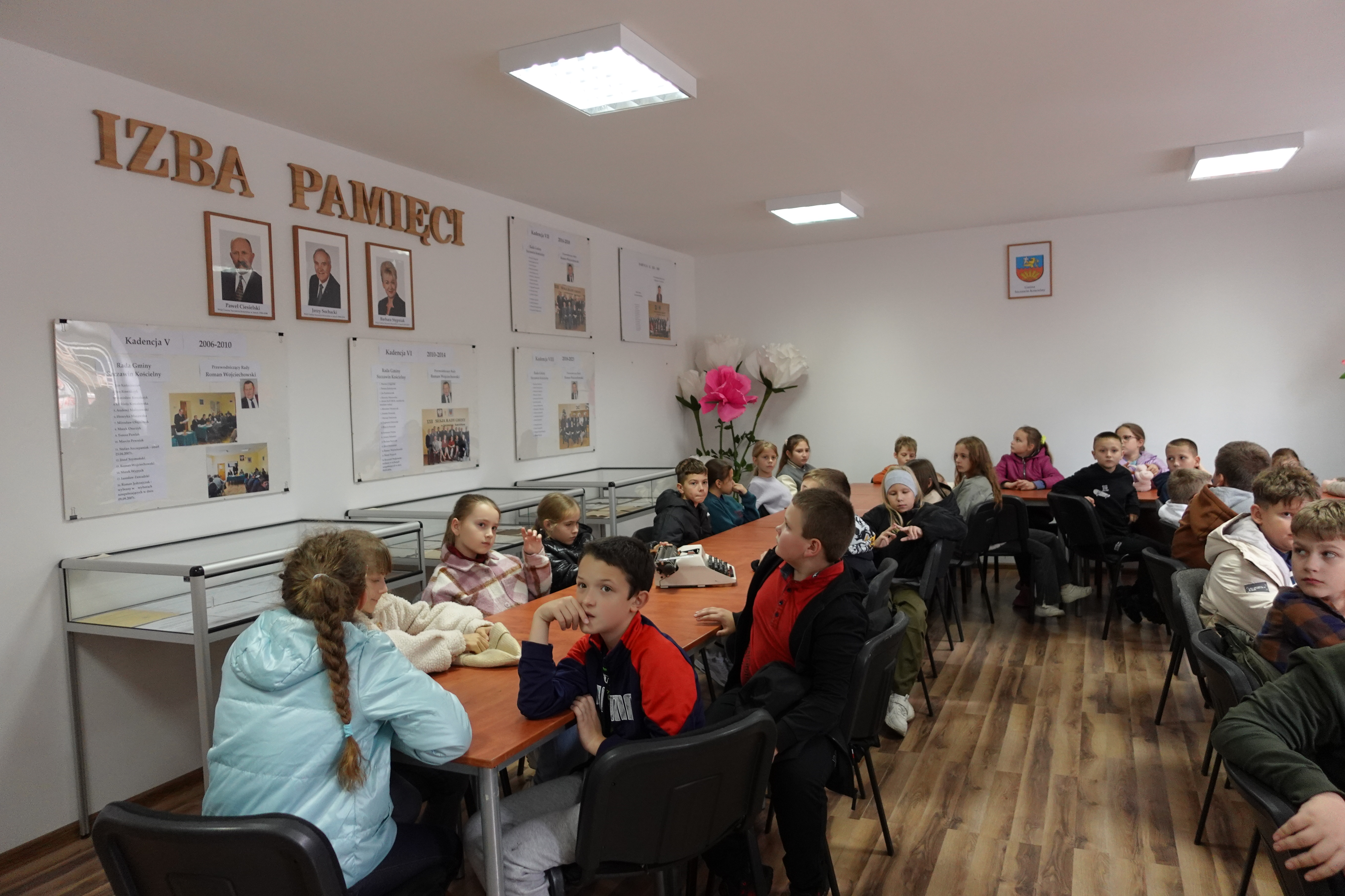 Podczas wizyty przedstawiono historię oraz zadania samorządu gminnego, w sposób przystępny do wieku dzieci. Uczniom zaprezentowano eksponaty zgromadzone w Izbie Pamięci.