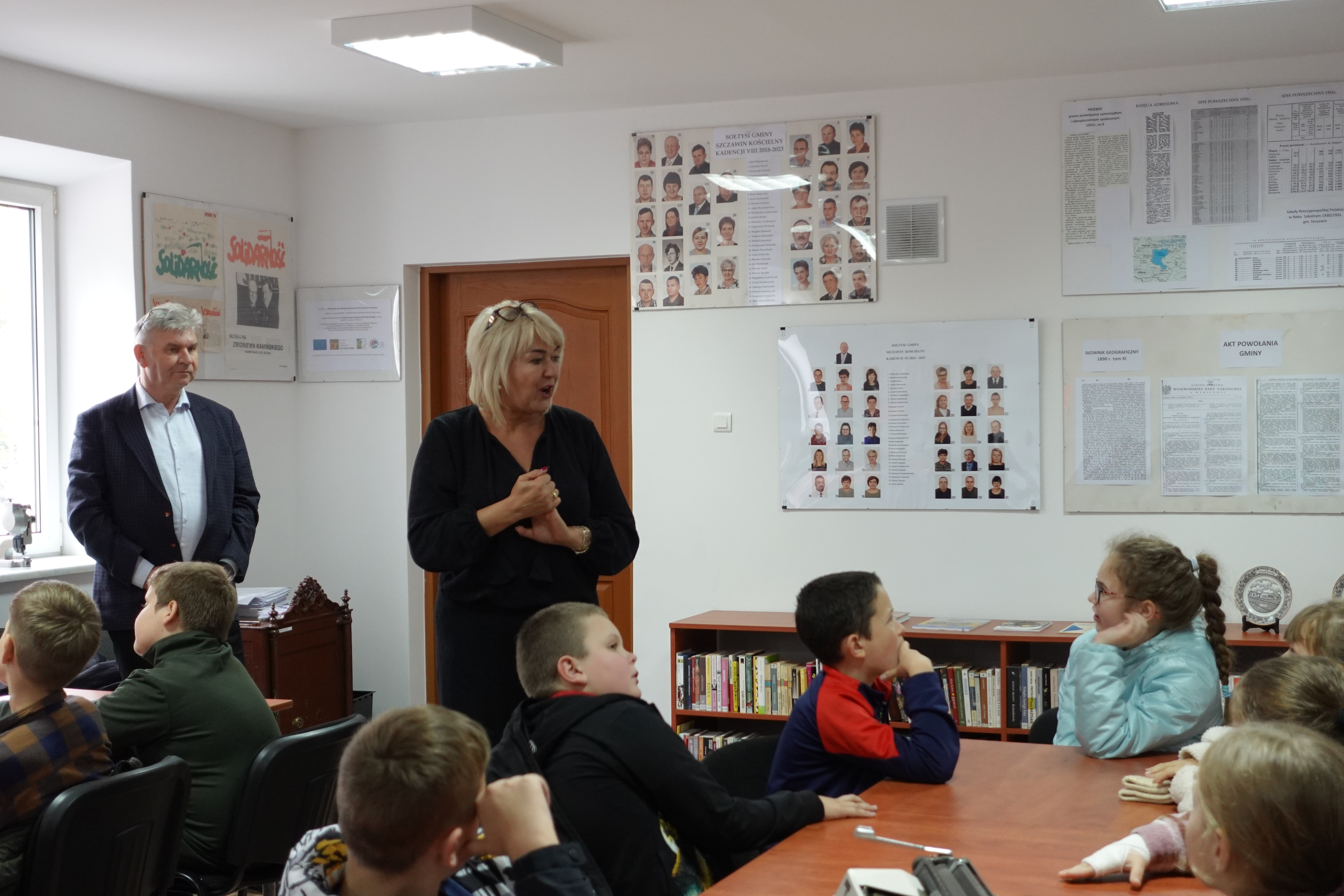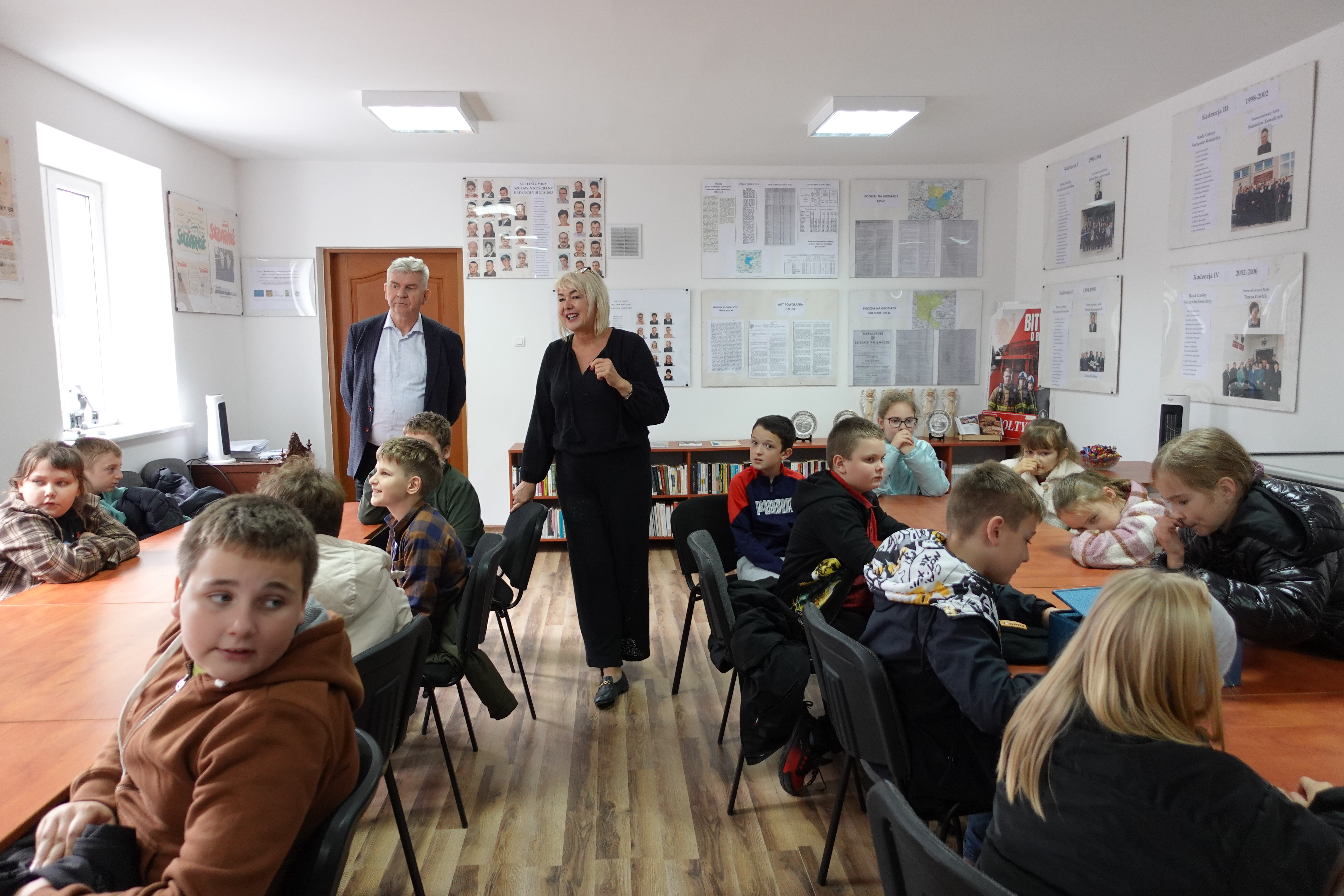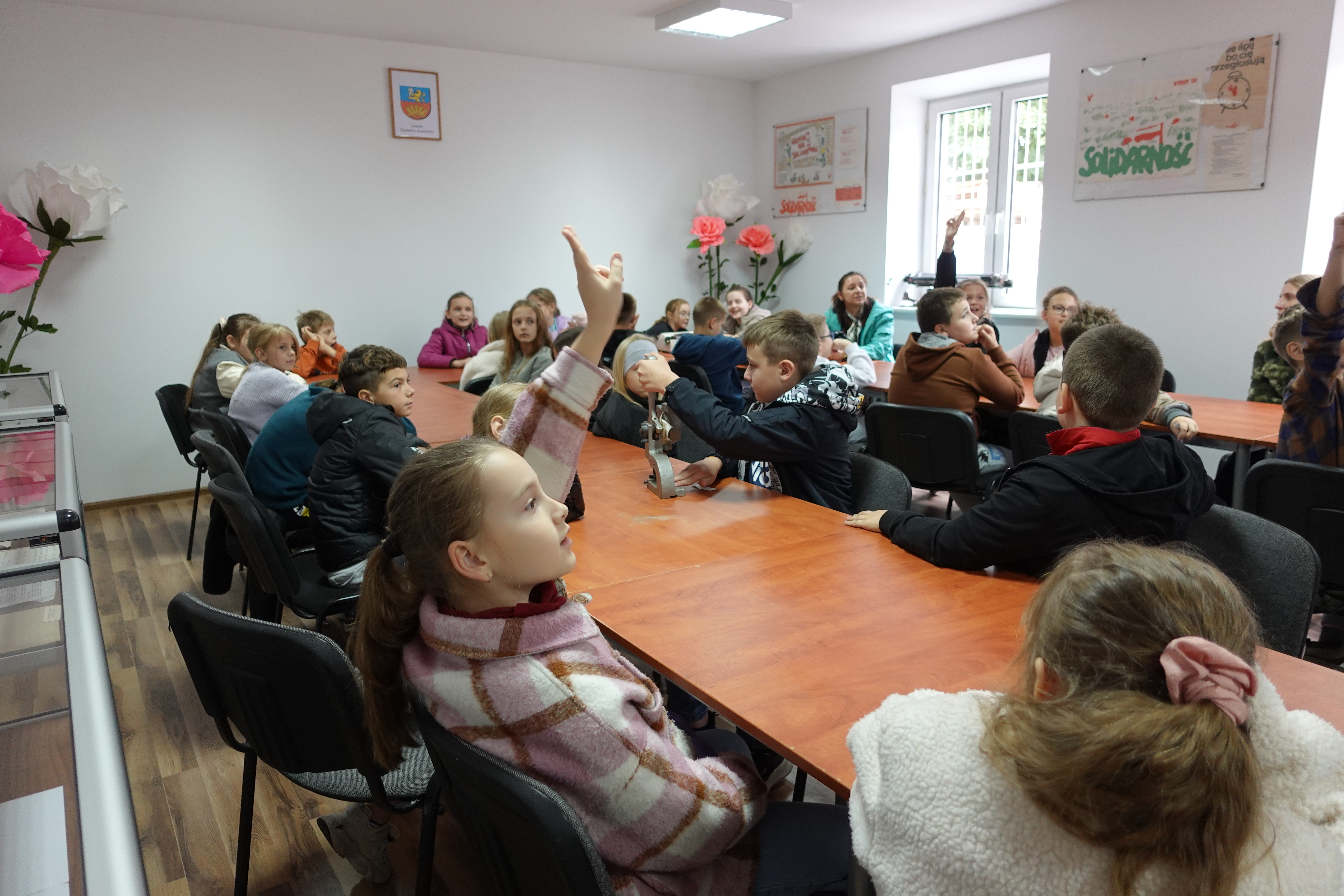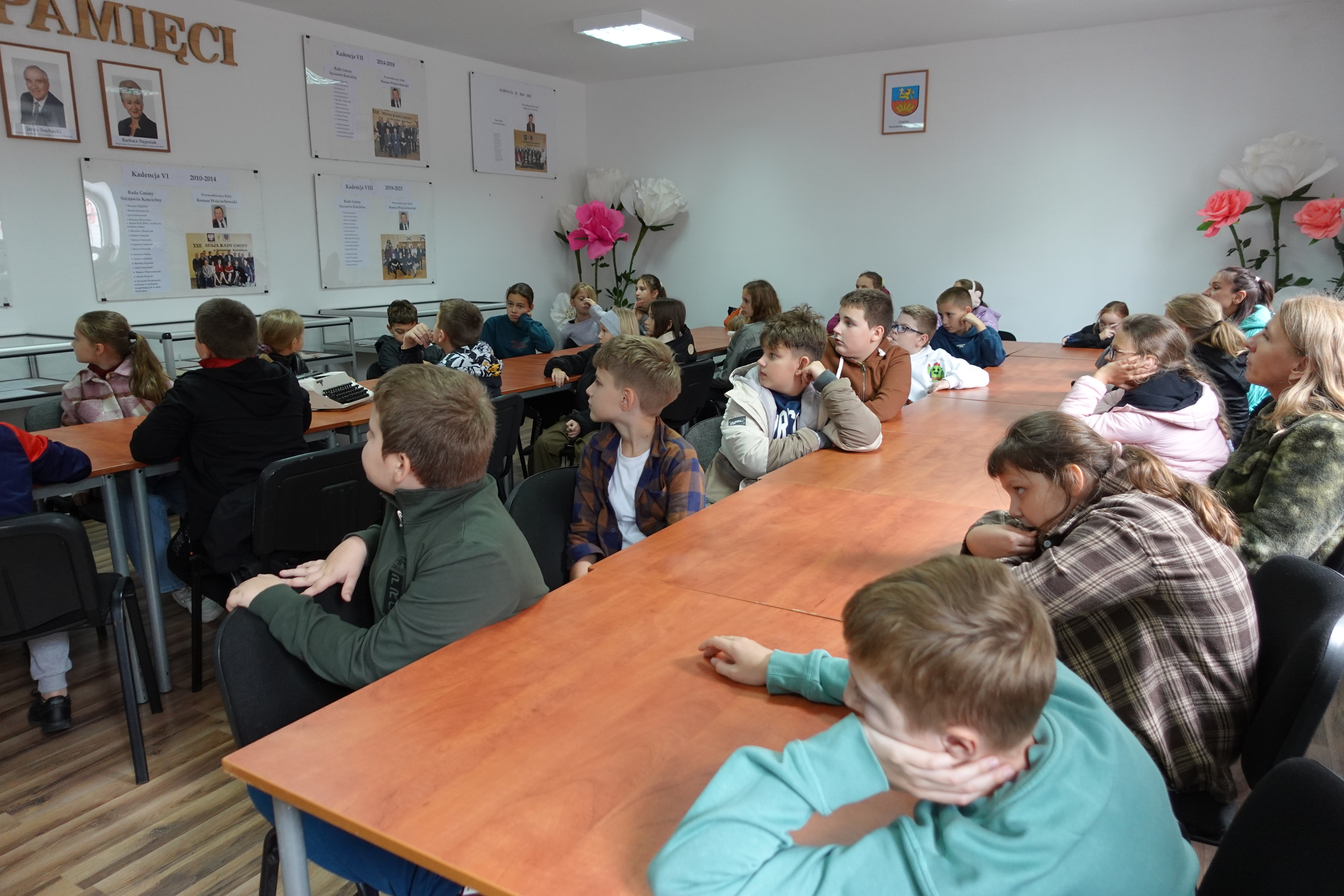 Podczas wizyty przedstawiono historię oraz zadania samorządu gminnego, w sposób przystępny do wieku dzieci. Uczniom zaprezentowano eksponaty zgromadzone w Izbie Pamięci.