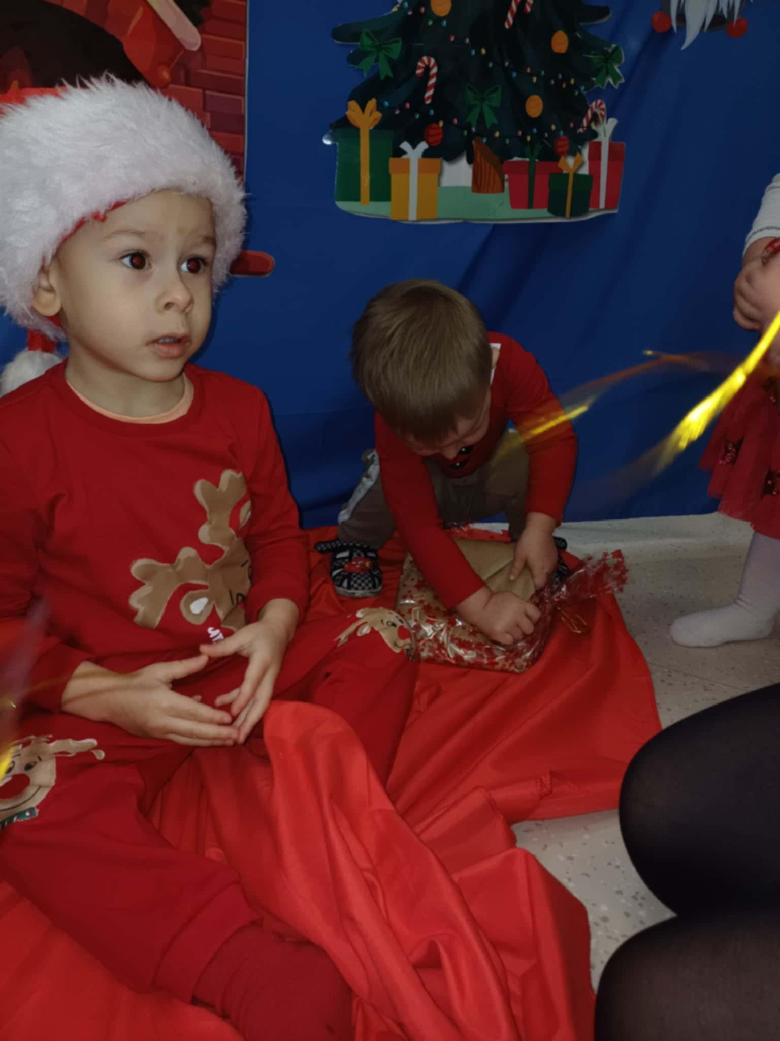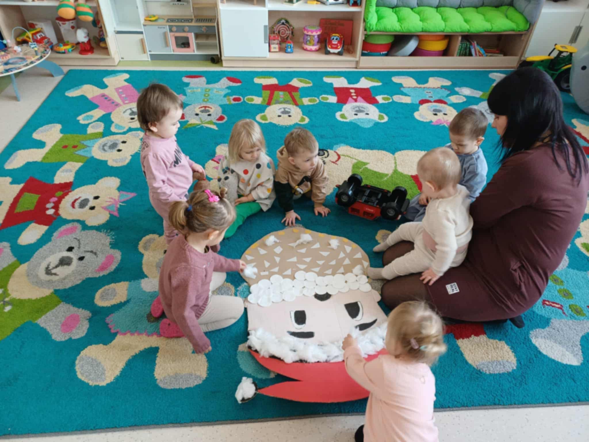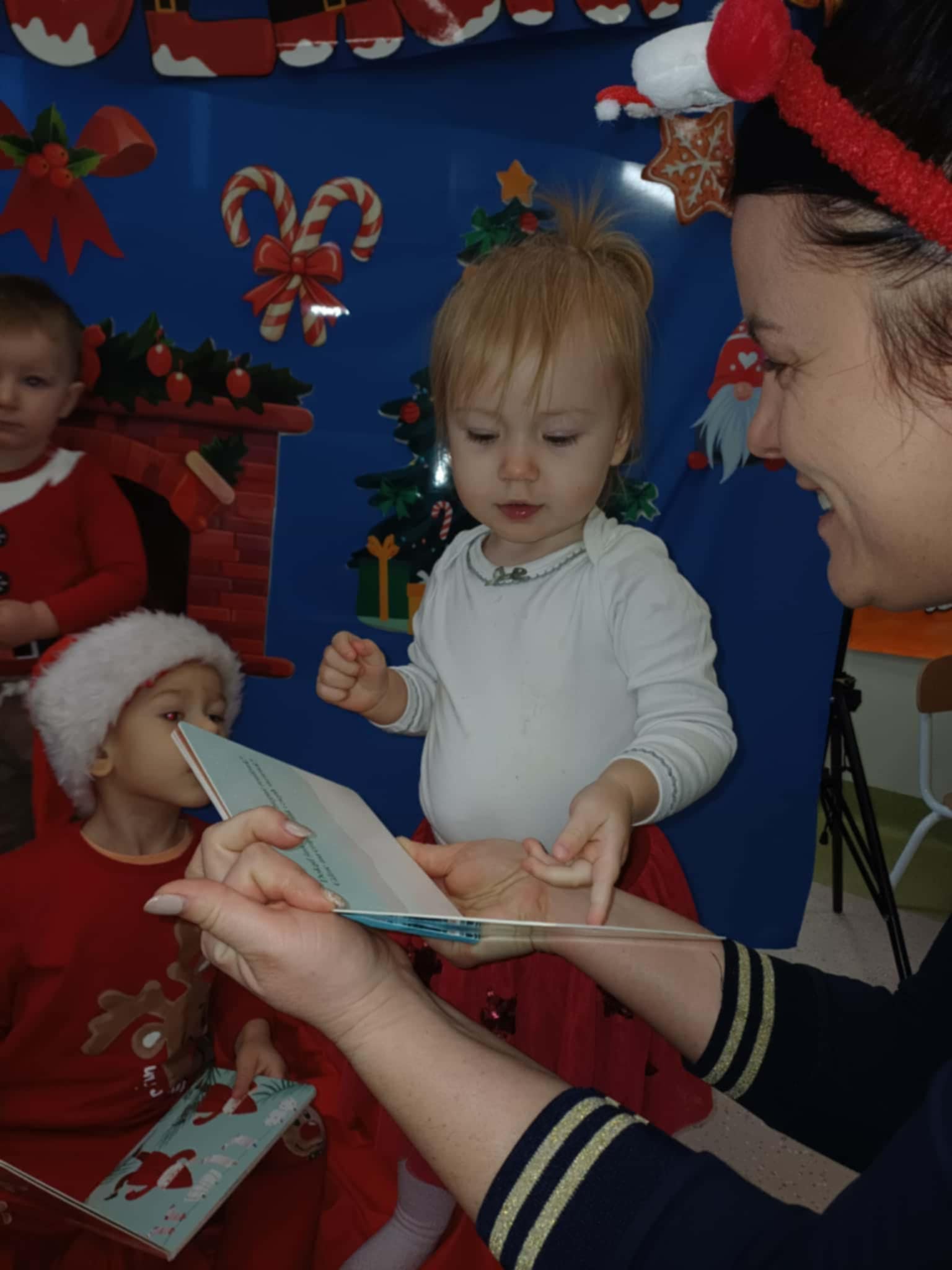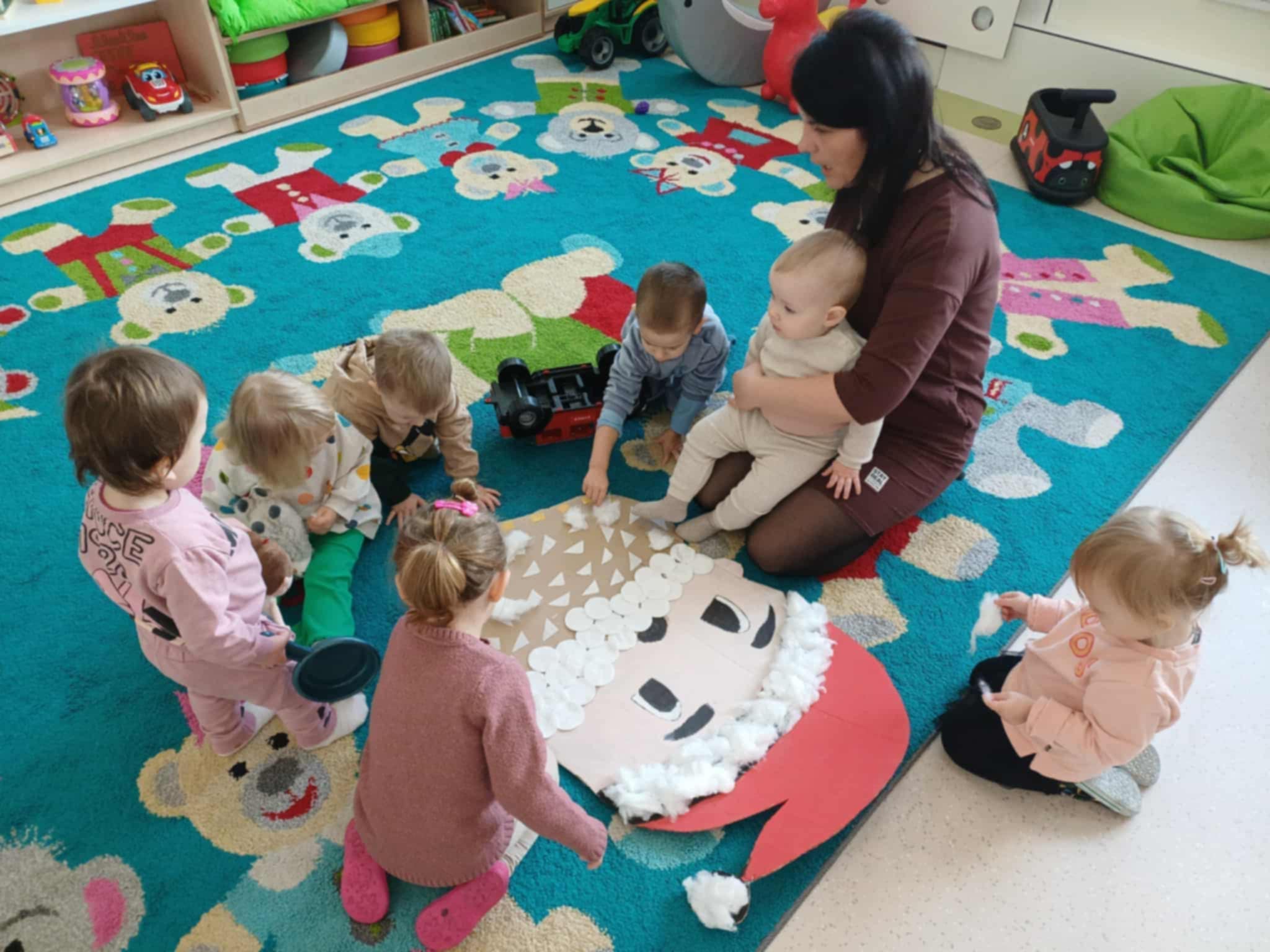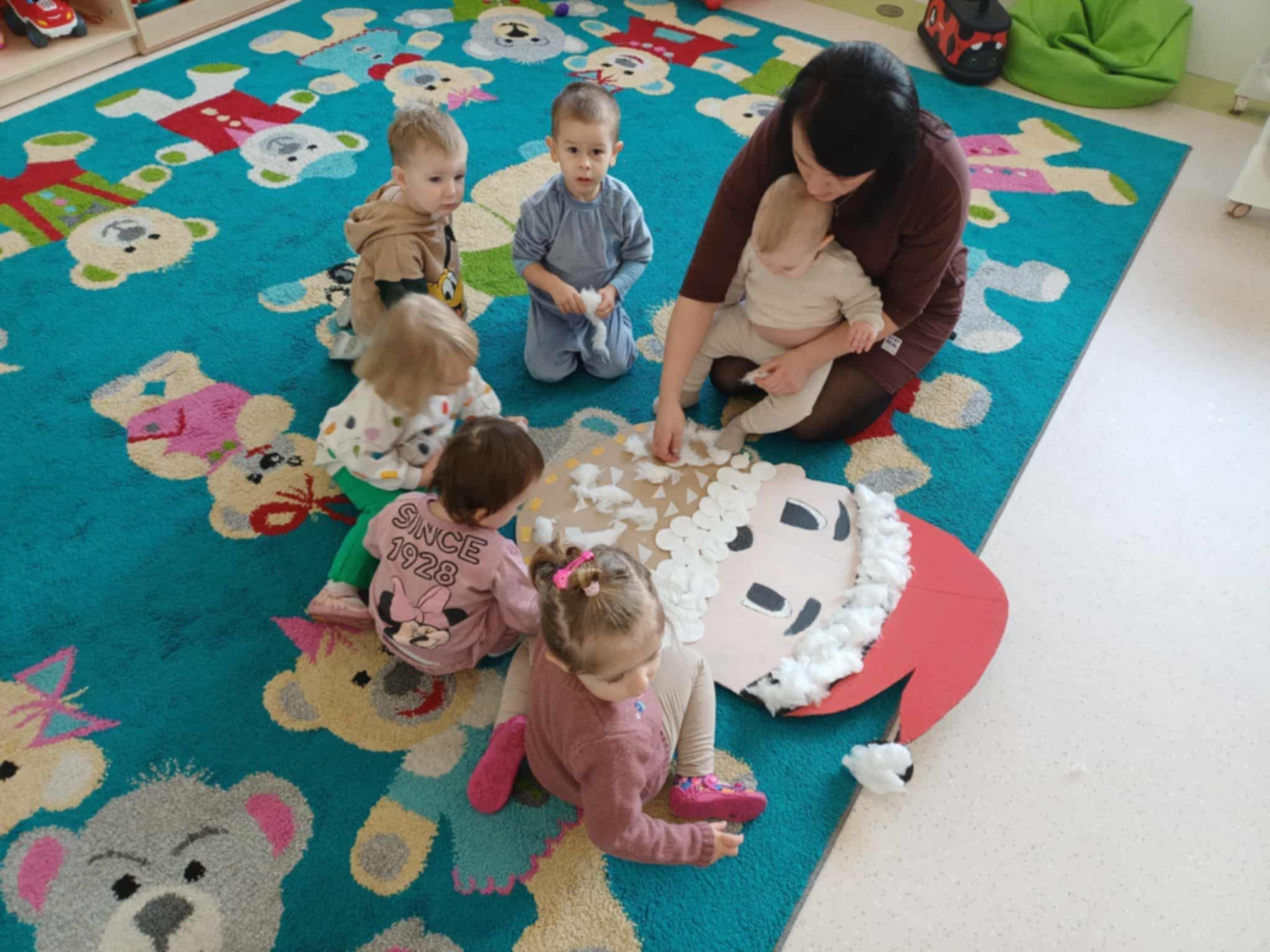Nasi „żłobkowicze” tworzyli piękne prace plastyczne – mikołaja, bałwanki oraz kolorowe ozdoby, które ozdobiły salę i dodały placówce prawdziwie świątecznego blasku. ![]()