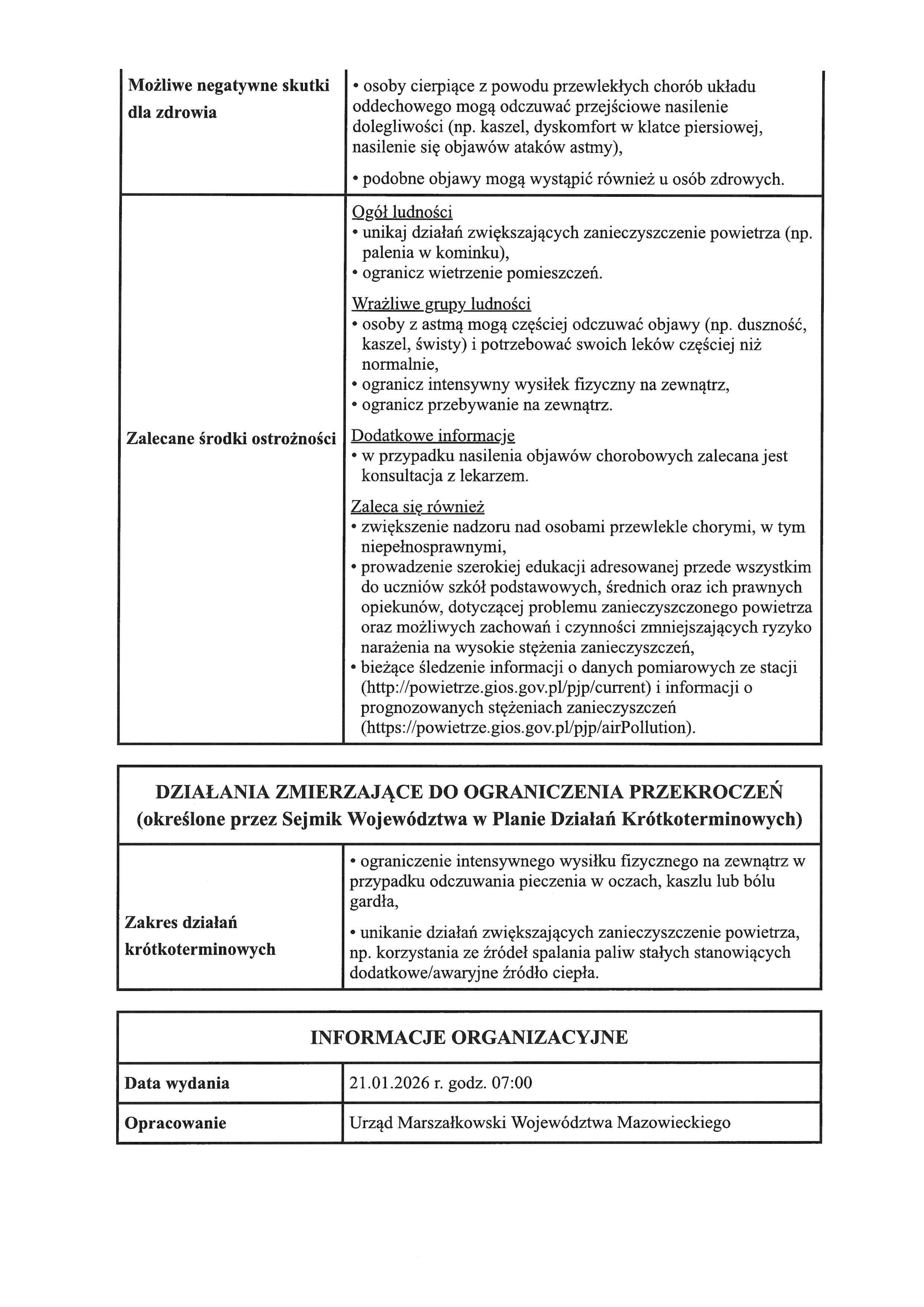 Informacje o ryzyku przekroczenia pyłu zawieszonego w powietrzu