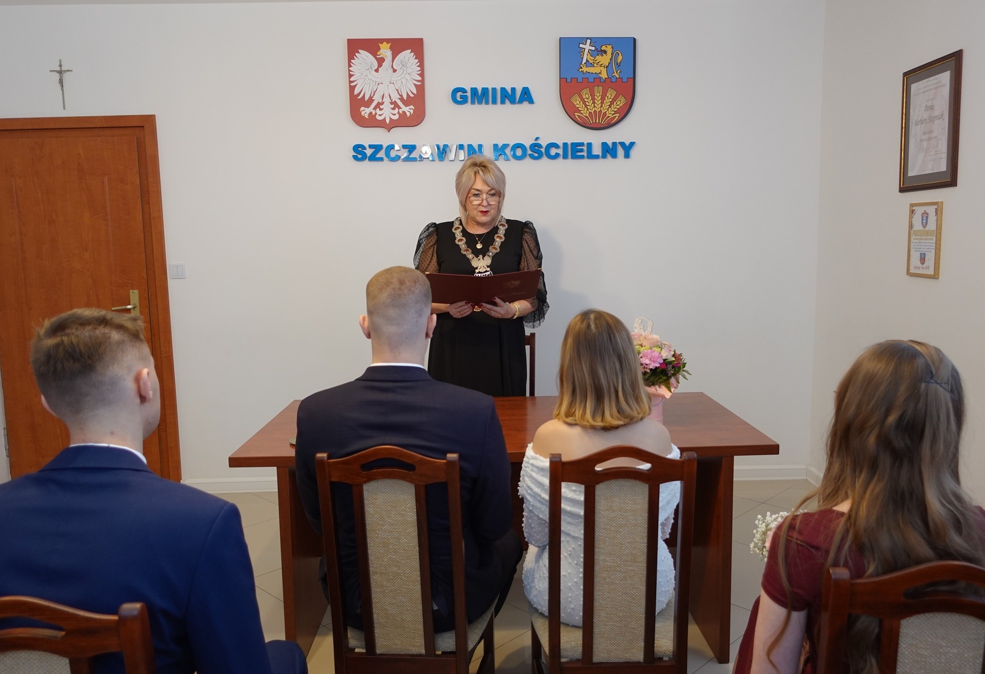 W dniu 20 lutego 2026 roku, jako Kierownik Urzędu Stanu Cywilnego w Szczawinie Kościelnym, udzieliłam ślubu Pani Sylwii Kowalewskiej i Panu Miłoszowi Furmanowi. ![]()