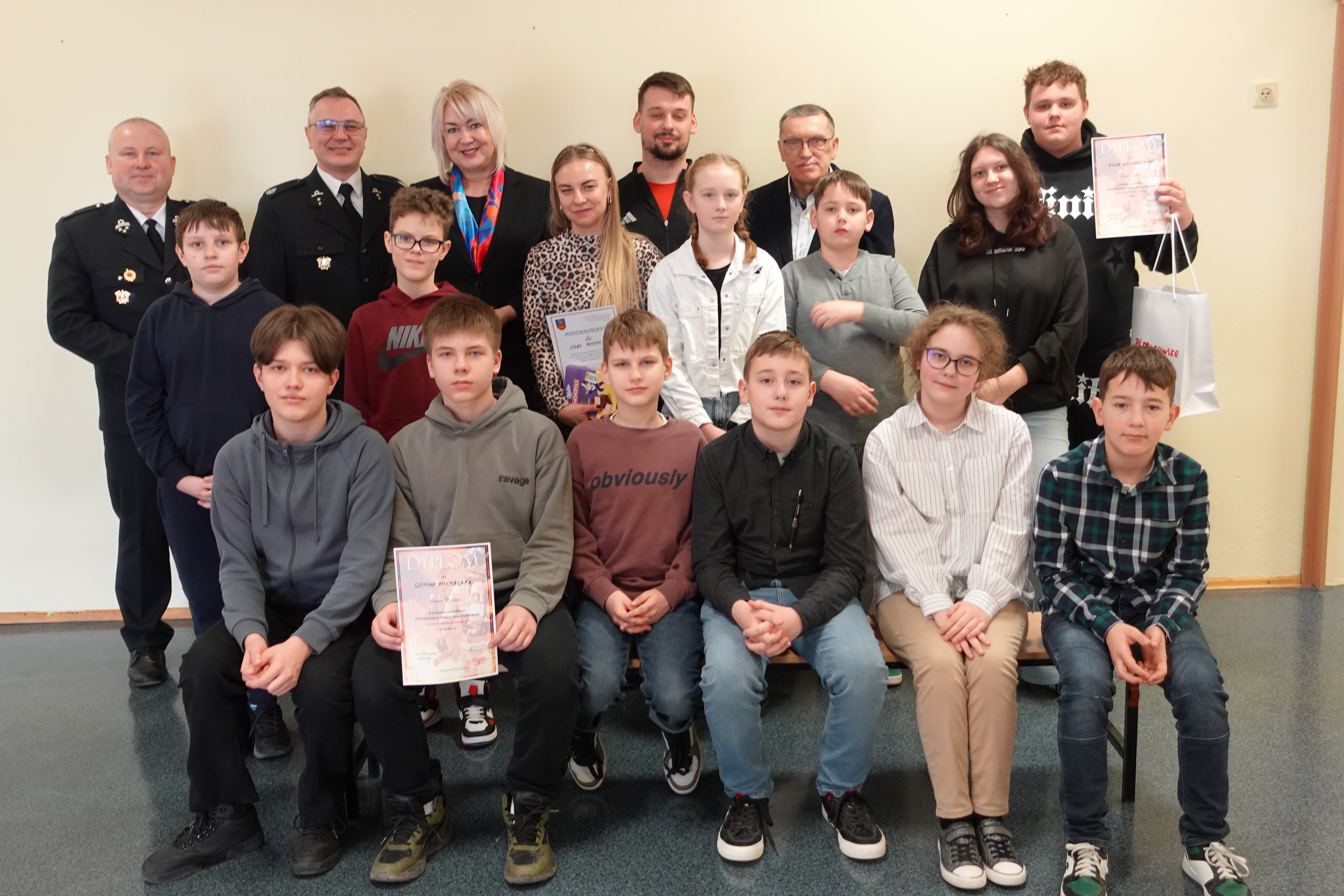 Dzieciom i młodzieży gratuluję uczestnictwa w turnieju i życzę dalszych sukcesów na kolejnych szczeblach Ogólnopolskiego Turnieju Wiedzy Pożarniczej.
