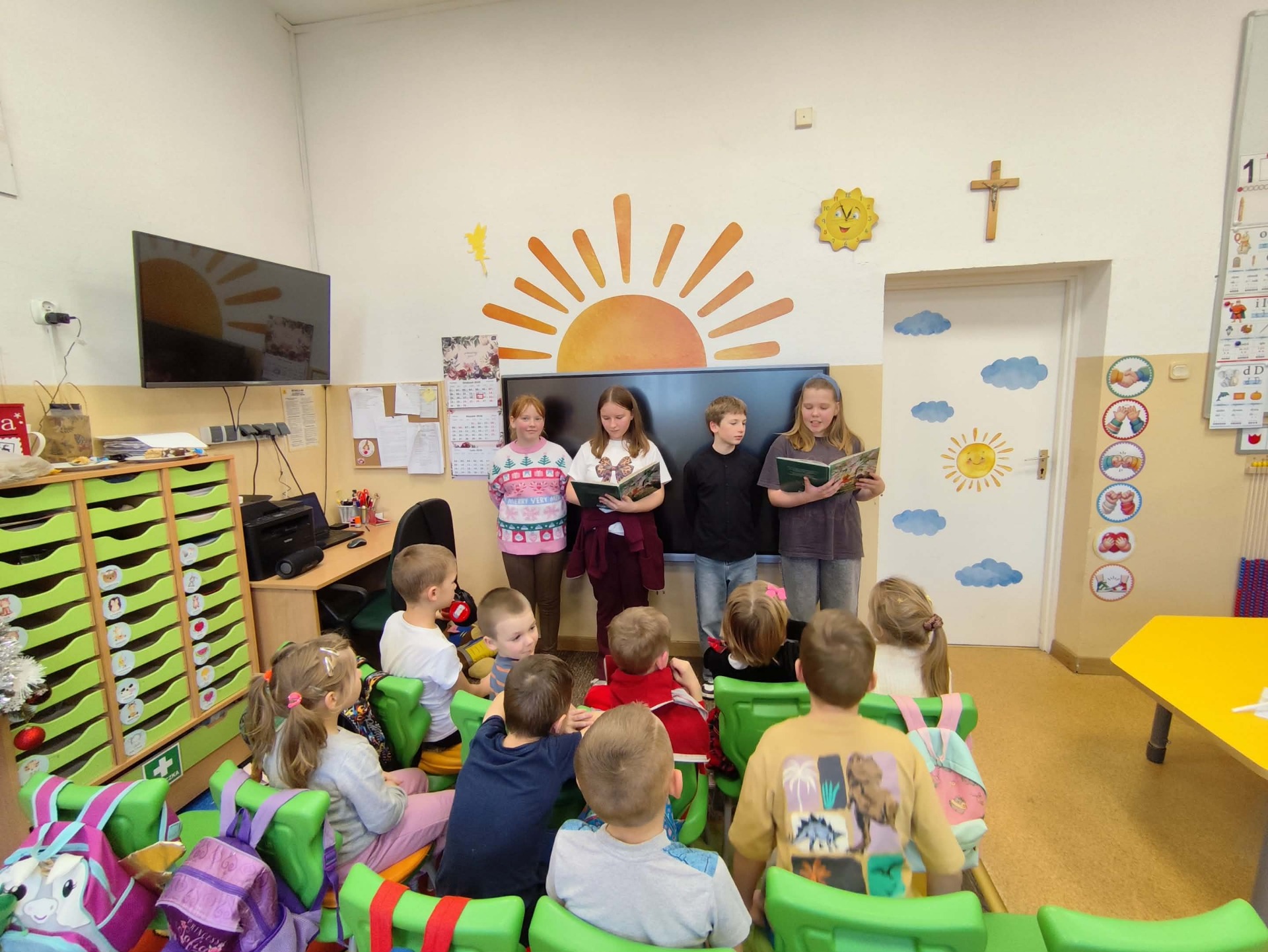 Warto podkreślić, że w szkole działa również koło polonistyczne „Pamięci Marii Kownackiej”. Jego uczestnicy, wspólnie z nauczycielką, przygotowują scenki, rekwizyty oraz maski bohaterów literackich, a następnie odwiedzają najmłodsze dzieci z Punktu Przedszkolnego i Oddziału Przedszkolnego. Podczas spotkań prezentują krótkie przedstawienia inspirowane twórczością pisarki, zachęcając najmłodszych do poznawania literatury i wspólnej zabawy.
