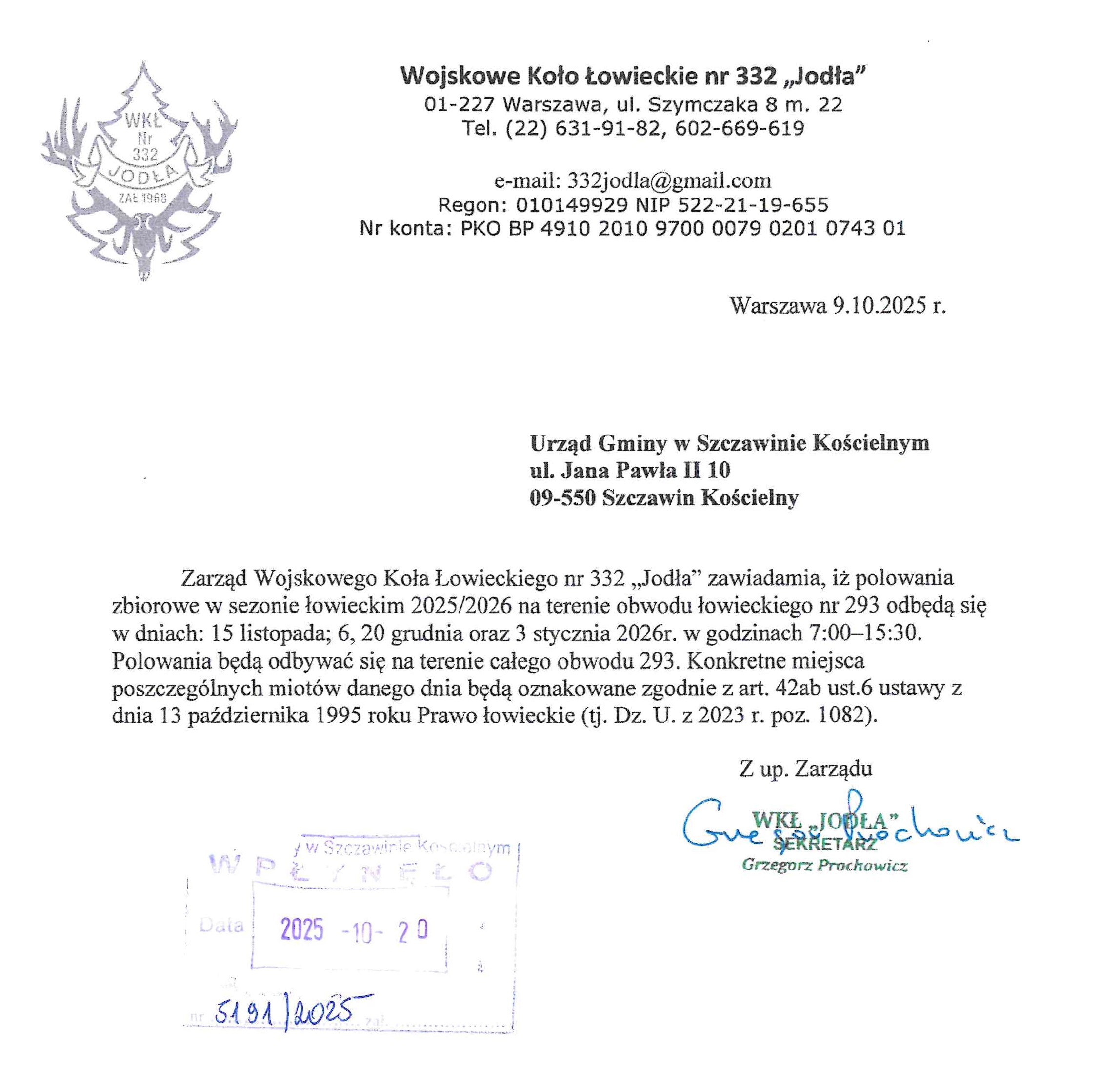 TERMINY POLOWAŃ ZBIOROWYCH W SEZONIE ŁOWIECKIM 2025/2026