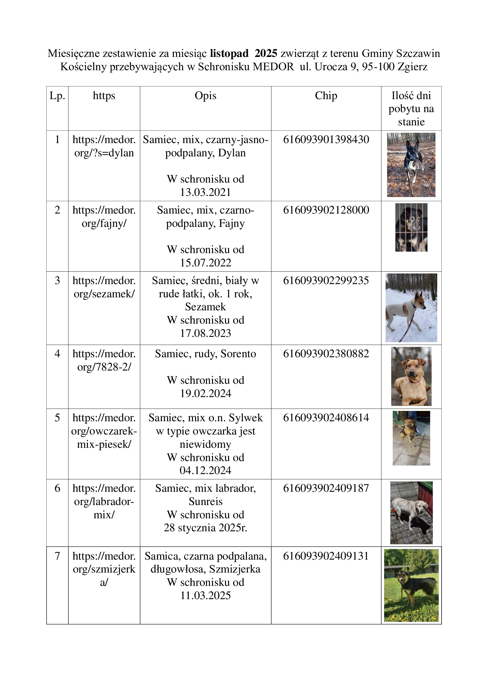 zachęcamy do kolejnych adopcji psów pochodzących z terenu Gminy Szczawin Kościelny a przebywających w schronisku prowadzonym przez Fundacja Medor Przyjaciele Bezdomnych Zwierząt ul. Urocza 9, 95-100 Zgierz.